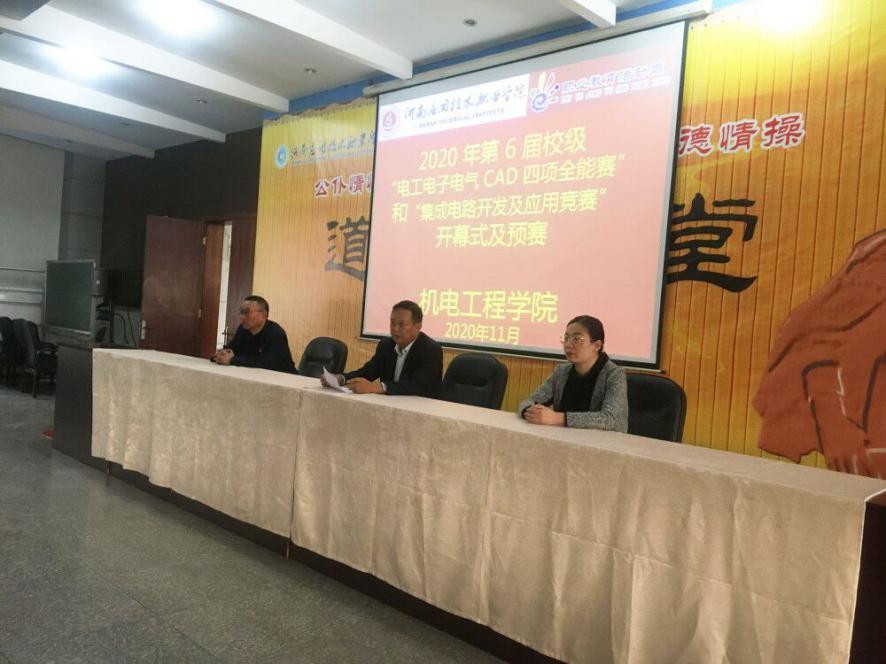 为大力弘扬劳动光荣、技能宝贵、创造伟大的时代风尚,进一步营造全社会关心支持职业教育的良好氛围,以“人人出彩,技能强国”为主题的2020年职业教育周活动于11月8日正式开始,今年会积极参与,11月9日下午举办了2020年第六届校级“电工电子电气CAD四项全能赛”和“集成电路开发及应用竞赛”的开幕式,今年会院长黄双成、副院长李凤银及教务办公室主任孙彩云参与开幕式,并指出此活动目的在于弘扬劳动光荣、技能宝贵、创造伟大的时代风尚,形成“崇尚一技之长、不唯学历凭能力”的良好学习氛围。