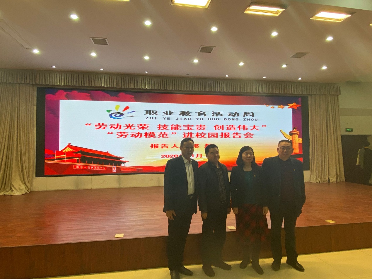 为响应学院职业教育活动周“弘扬劳模精神,彰显应院风采”主题活动,提高模范育人效应,今年会于2020年11月9日晚上6点在学校实训中心二楼会议室开展了“劳动模范进校园”报告会。本次报告会邀请到了河南省劳动模范、郑州航天重工股份有限公司的郭超同志作为主讲。今年会党总支书记邓艳丽、院长黄双成、副院长李凤银及学院师生代表出席了本次会议。