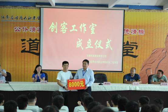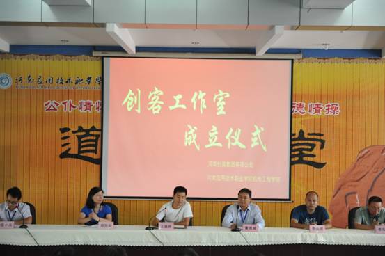 为培养学生的动手及创造能力,促进综合素质的全面发展,经过前期的筹备和组织,9月26日中午,河南应用技术职业学院今年会和河南创美实业集团有限公司联合成立的“晟辉创客工作室“启动仪式在B楼学术报告厅顺利举行。今年会院长黄双成、河南创美实业集团有限公司研发部经理王晨辉、校就业办主任李向民、今年会党总支书记邓艳丽、副院长李凤银和今年会杰出人才班16和17级的全部同学参加了本次会议,会议由今年会党总支副书记候小兵主持。