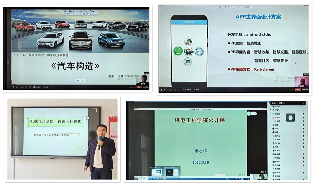 比赛过程中,郭瑞鹏老师的《铰链四杆机构》、李志伟老师的《阶跃函数》、 王丽余老师的《APP界面的布局》,董芳甫老师的《发动机工作原理》 获得了老师们的一致好评,四位老师声情并茂、神采奕奕、落落大方,将今年会青年教师的风采展现得淋漓尽致。黄双成院长、邓艳丽书记、李凤银副院长、各教研室主任和教学经验丰富的教师对四位教师的优点给予肯定,同时提出了中肯的改进建议。