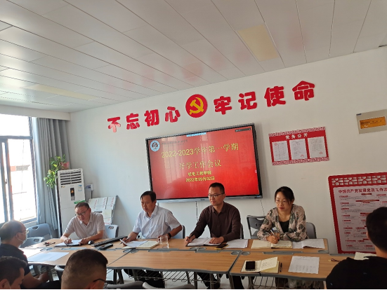 首先,黄院长介绍了今年会新任职党支部书记张亮同志、副书记耿丽敏同志以及两名新入职教师。张亮书记围绕自身工作经历进行了自我介绍,并对学院工作提出了展望,对新岗位的工作充满信心。他提出,学院上下要聚焦中心工作,主动积极谋划,全体教职工要尽职尽责,紧抓落实,要在疫情防控、立德树人、教育教学、专业结构、人才队伍、招生就业等方面展现新作为,取得新成就,以优异的成就迎接党的二十大胜利召开。之后,耿丽敏书记对新岗位假期工作进行了总结,对近期的开学工作做了部署规划;李凤银院长重点强调了开学的教学工作开展要求,同时强调了实训室及20级学生定岗实习管理工作。
