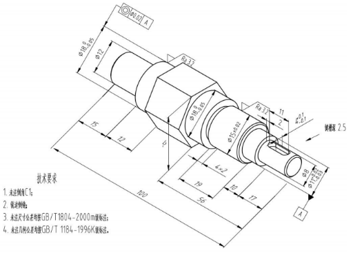 2)尺寸齐全、正确、清晰;零件的尺寸精度、几何精度、表面粗糙度不作要求,可根据指定零件的工作性质,合理自定若干技术要求;