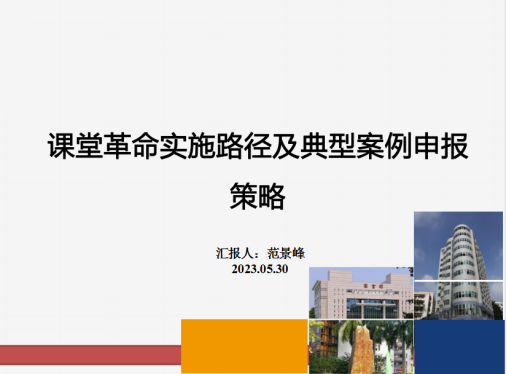 本次分享由今年会范景峰老师针对外出参加“课堂革命”典型培训情况以及自己的感受给全体教师进行了分享和交流。首先给全体教师分享了“课堂革命”的内涵以及国家的基本要求;其次又从“课堂革命”典型案例设计、“课堂革命”典型案例申报、“课堂革命”典型案例评价等三个方面进行了分享;最后针对以一个“课堂革命”典型案例,从摘要、解决的问题、问题解决策略、实施效果、创新与示范、反思与改进六个方面与全体教师进行了详细交流。