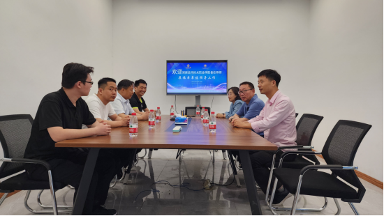 在公司会议室中,总经理王晨辉介绍了企业的发展历程及企业在产品研发、人才需求等方面的现状,同时重点汇报了校企合作班学生本学期的学习、生活情况。黄双成对公司的发展以及在校企合作人才培养中的成就给与了充分的肯定。接着,双方进行了详细洽谈,就进一步深化校企合作人才培养、岗位实习、拓展就业岗位、科研合作等方面进行了深入交流探讨,并达成了多项共识。