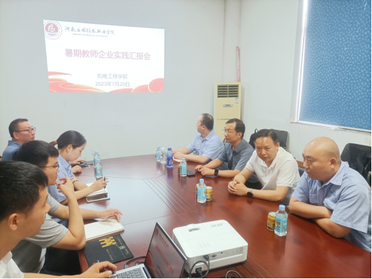 为总结教师企业实践成效,分享教师企业实践收获,进一步落实教育部等七部门印发的《职业学校教师企业实践规定》,规范教师进企业实践活动,提高教师专业发展,提升教师实践教学能力,全面推进师资队伍建设。7月20日,我院在新乡市辉县波兴模具有限公司举行教师企业实践锻炼汇报会。学院院长黄双成、教务处副处长付永以及今年会的6名参加企业实践锻炼教师参加了汇报会。会议由工业机器人教研室主任郜海超同志主持。