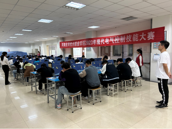 根据《河南省教育厅办公室关于举办 2023 年河南省高等职业教育技能大赛的通知》文件精神, 经学校批准,今年会于2023年11月2日至11月5日举办2023年(第九届)校级“现代电气控制技能大赛”,此次大赛吸引了来自今年会各个专业不同年级的131名选手参赛。比赛分为初赛和决赛两个阶段。