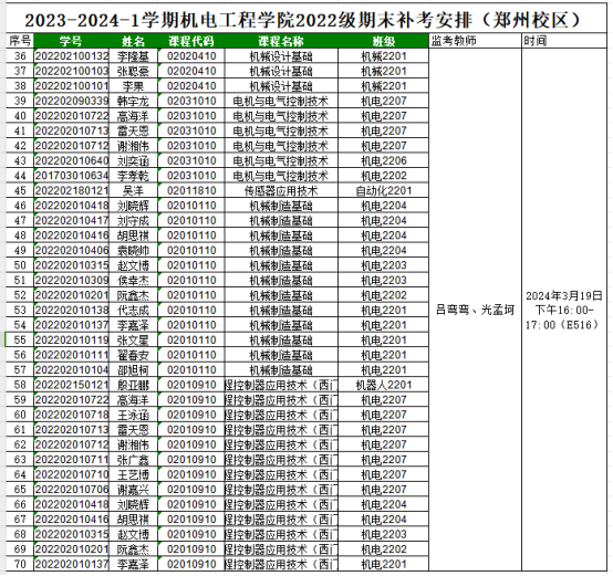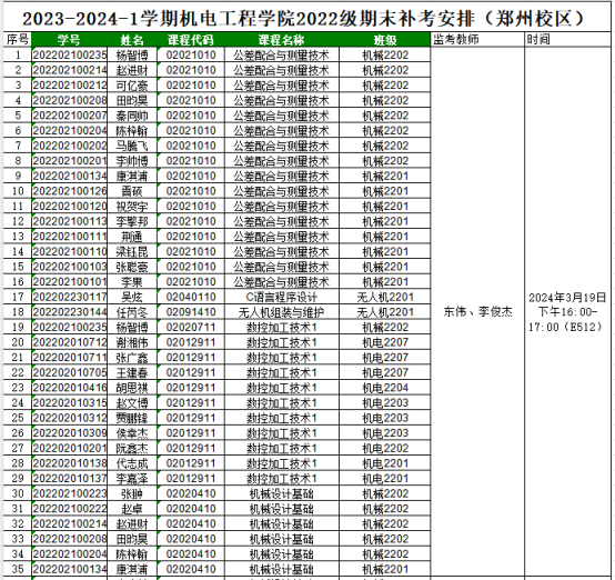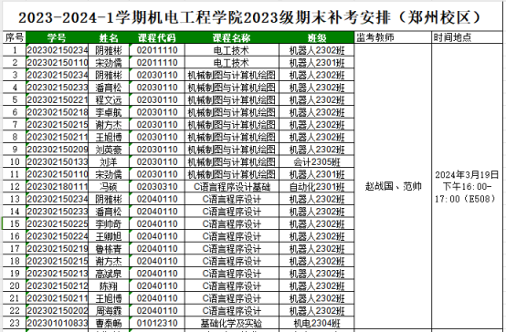 根据2023—2024学年第学期机电工程学院补考名单确定今年会所承担的补考科目,并在今年会学习通平台建立专业类理论课程的补考科目(课程)。