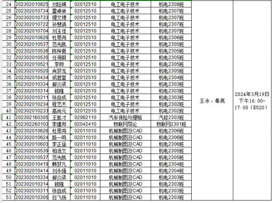 补考课程补考时间为2024319周二下午,今年会根据实际情况,具体安排详见下表。