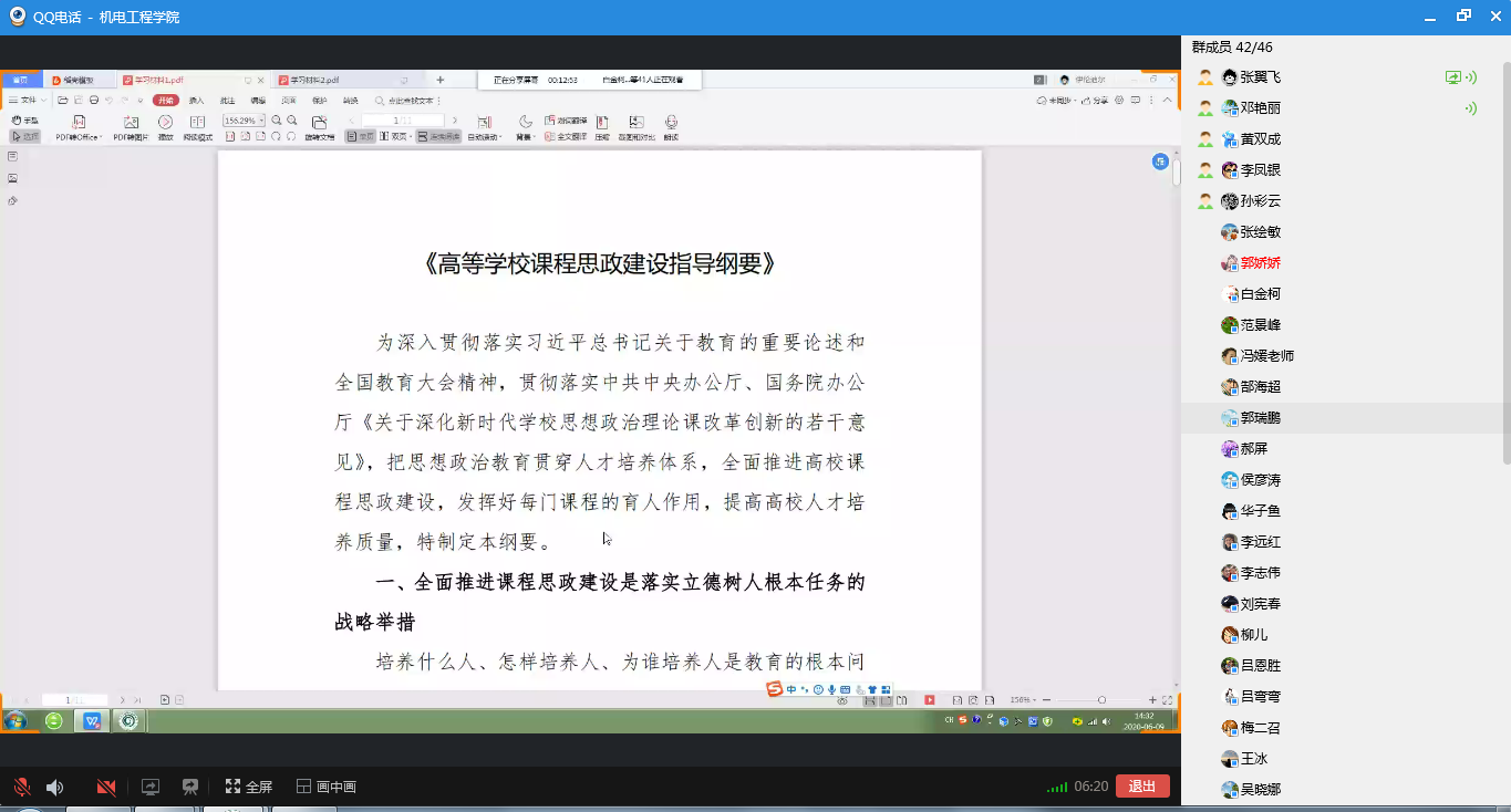 根据学校党委和宣传部的安排,今年会党总支于2020年6月9日下午2:30组织全体教职工一起学习《高校课程思政建设指导纲要》和《政府工作报告》。会议由党总支副书记邓艳丽主持。