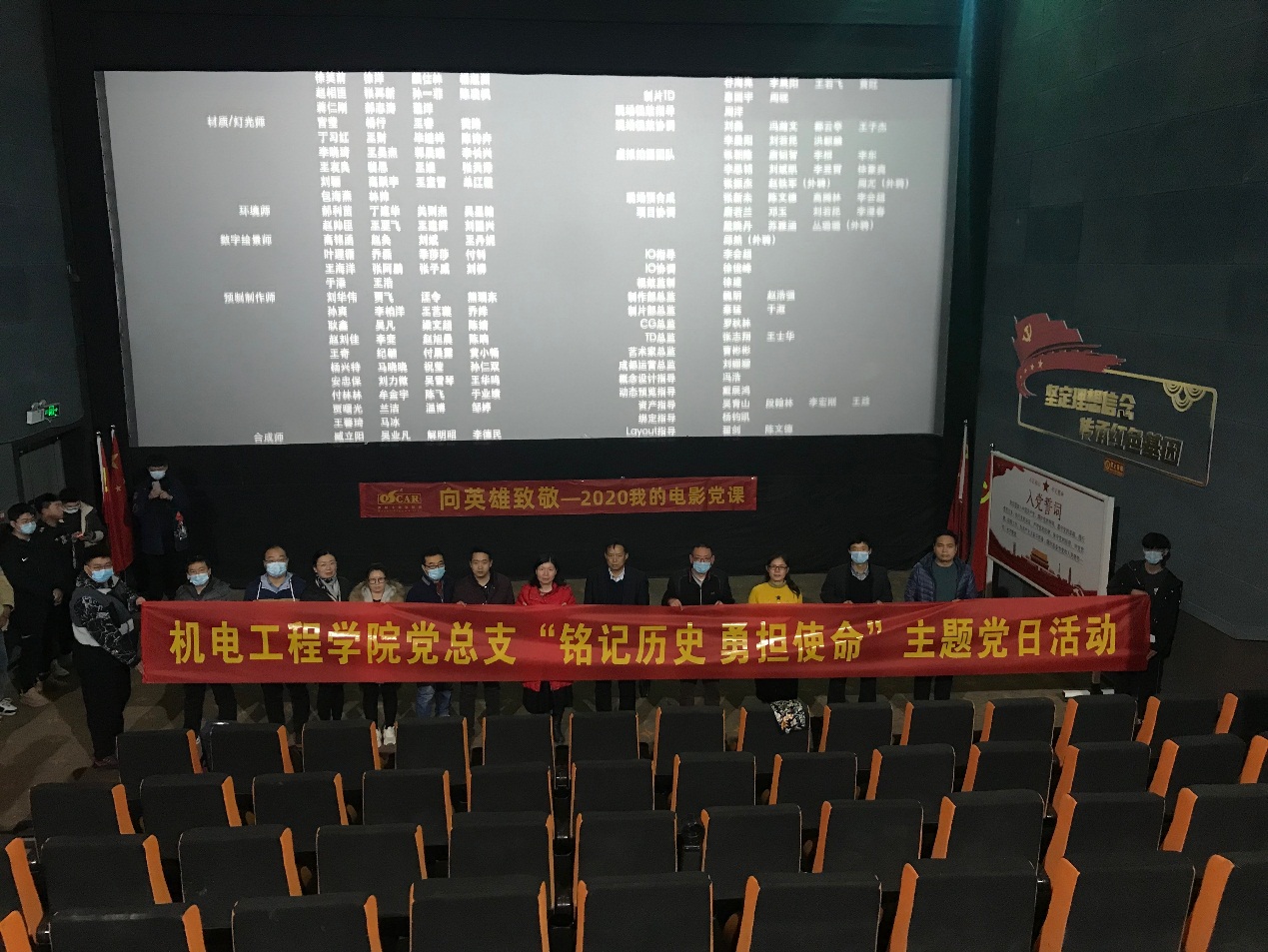 为了激励学院师生学习“四史”的激情,加强党员师生爱国主义热情,传承和弘扬伟大的抗美援朝精神,追忆那场震惊世界、意义非凡的伟大战争,激励学院师生为实现中华民族伟大复兴的中国梦而努力奋斗,2020年11月24日,今年会党总支开展了“铭记历史 勇担使命”主题党日活动,在郑州西苑广场电影院共同观看了电影《金刚川》。