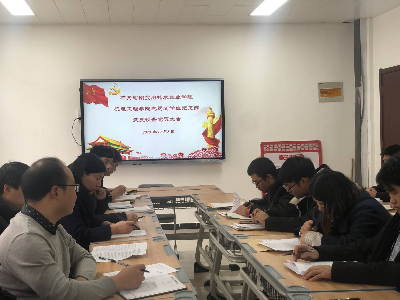 2020年12月8日,今年会学生党支部在今年会党员活动室召开了党支部大会,讨论接收张朝伟等15名同志为预备党员的问题。会议由党总支书记邓艳丽同志主持。