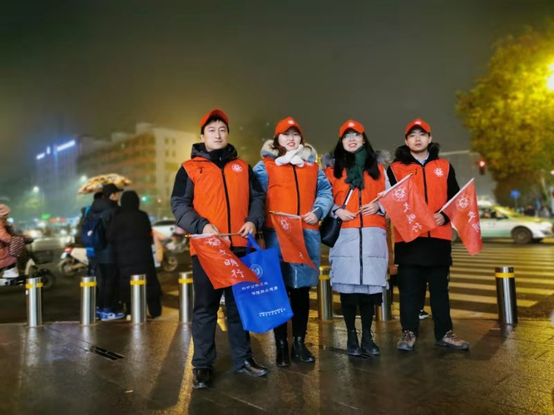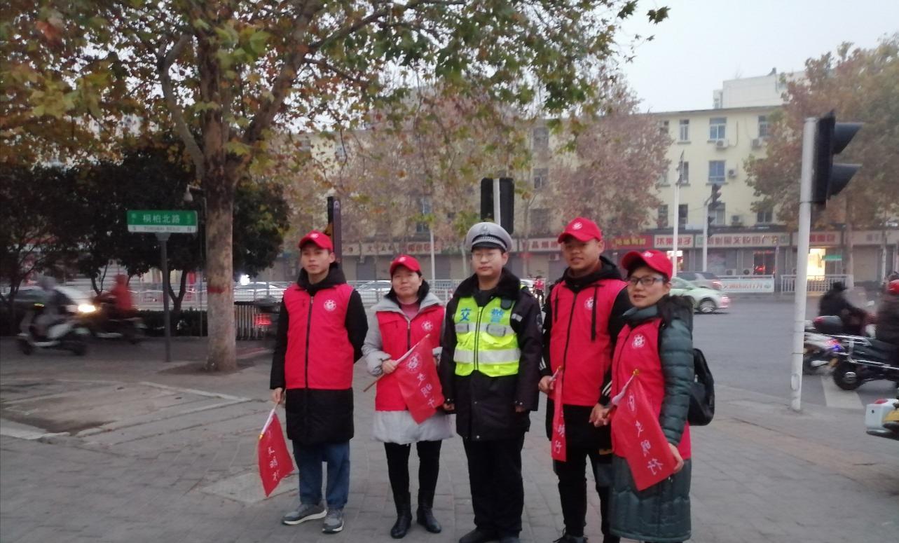 为了进一步推动郑州市文明城市建设,我校承担了桐柏路和棉纺路交通岗文明出行的交通志愿服务活动。2019年12月25日早上7点20分,今年会党总支邓艳丽副书记带领文明交通岗志愿服务团队到达岗位,并与该路口的交通民警进行沟通,具体了解执行任务要求。然后开始协助民警维持早高峰7点半至8点半的交通秩序,及时劝阻一些不文明出行行为。