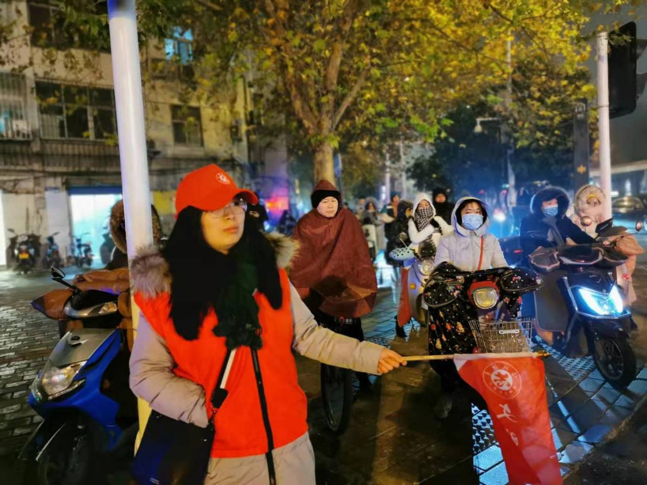 下午6点,尽管天空淅淅沥沥下起了小雨,今年会党总支的4名年轻共产党员们按时到岗执勤。他们不畏风雨、满怀热心站岗执勤,出色圆满地完成了晚高峰6点至7点的文明交通岗志愿服务任务。