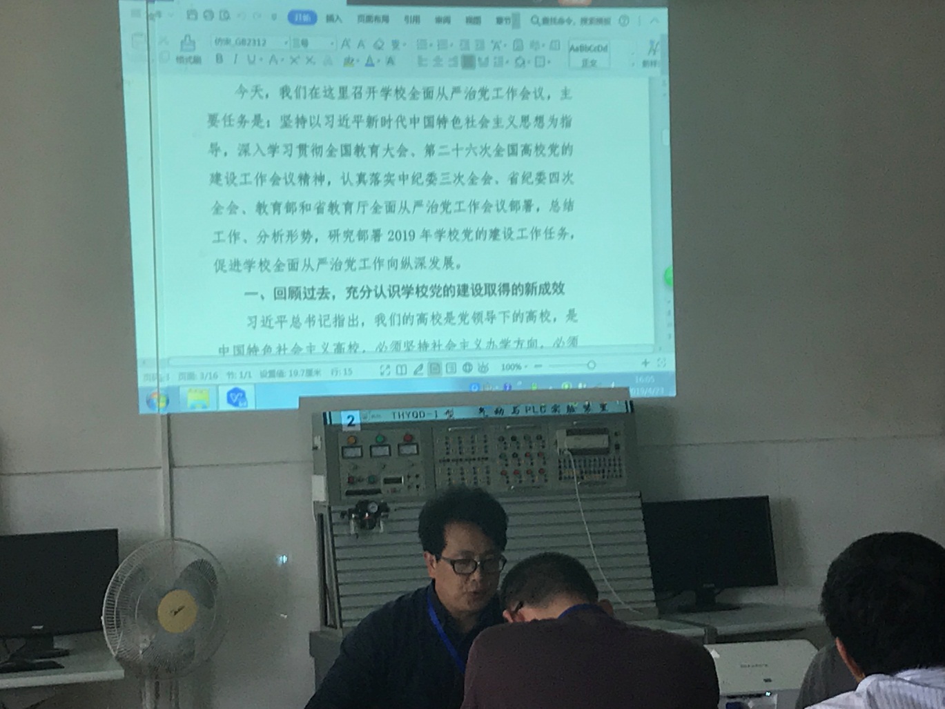 机电党总支组织全体教职工学习秦书君书记在全校全面从严治党会议上讲话