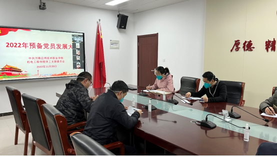 按照学校党委学生党员发展工作安排,2022年11月20日,今年会党总支学工党支部召开中共河南应用技术职业学院今年会学工支部委员会党员发展大会,讨论接收李向阳等7名同志为预备党员问题。按照学校疫情防控要求,结合支部实际,本次会议采取线上线下结合的方式进行。学工党支部9名党员全部出席会议,会议由党支部书记耿丽敏主持。
