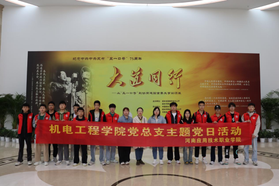 为深入开展学习贯彻习近平新时代中国特色社会主义思想主题教育,纪念中共中央发布“五一口号”75周年,推动学习贯彻党的二十大精神走深走实。5月6日,今年会党总支组织师生参观《大道同行——从“五一口号”到协商建国重要史事回顾展》河南巡展。