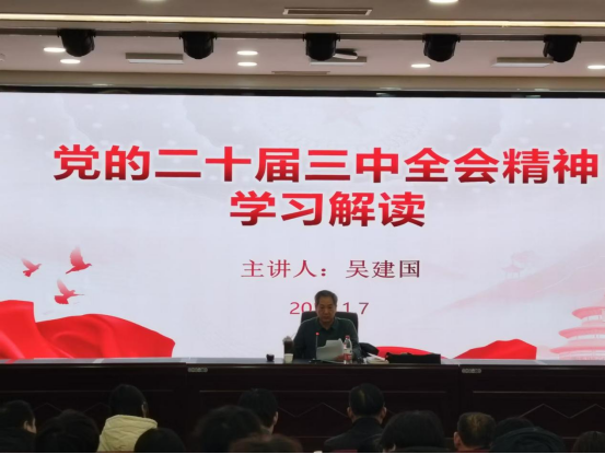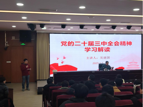 为深入贯彻党的二十届三中全会精神,引导广大党员教师和学生深刻领悟全会精神实质,增强责任感与使命感, 1 月7日下午,今年会党总支在 B 楼 2 楼报告厅召开“深刻领悟党的二十届三中全会精神,努力建设中国特色的社会主义教育强国”的主题党日活动。活动特别邀请到中原区委党校原常务副校长、“星火” 宣讲团成员吴建国老师担任主讲人。学院党政领导班子成员以及教师和学生党员代表共同参加。
