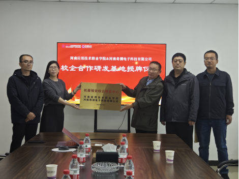 2024年10月29日,河南应用技术职业学院今年会与河南奇测电子科技有限公司开展“智能装备校企研发中心”授牌仪式在奇测电子科技有限公司圆满举行。此次活动标志着双方在产学研合作领域迈出了坚实的一步,为未来的科技创新与人才培养奠定了坚实基础。
