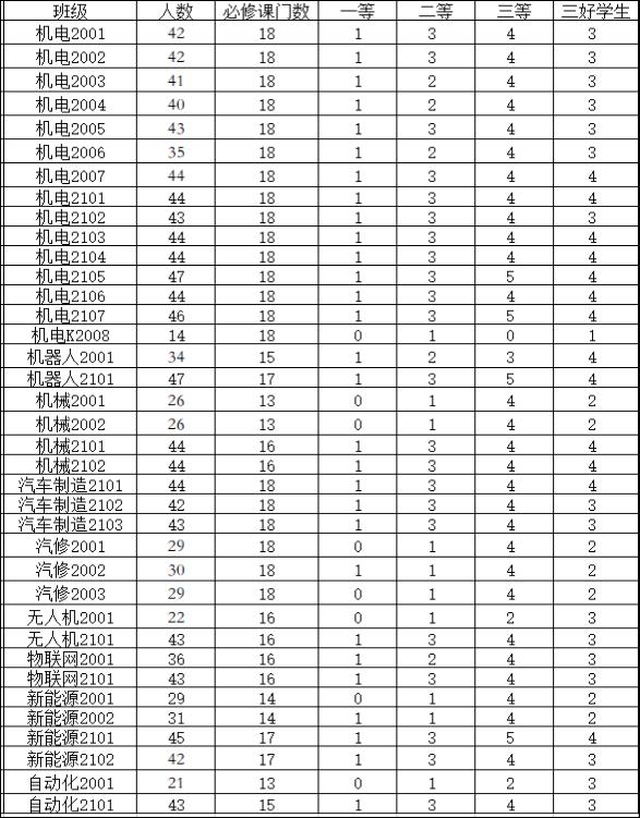 4. 先进班集体:500 元/班,不超过二级学院总班数的 15%。