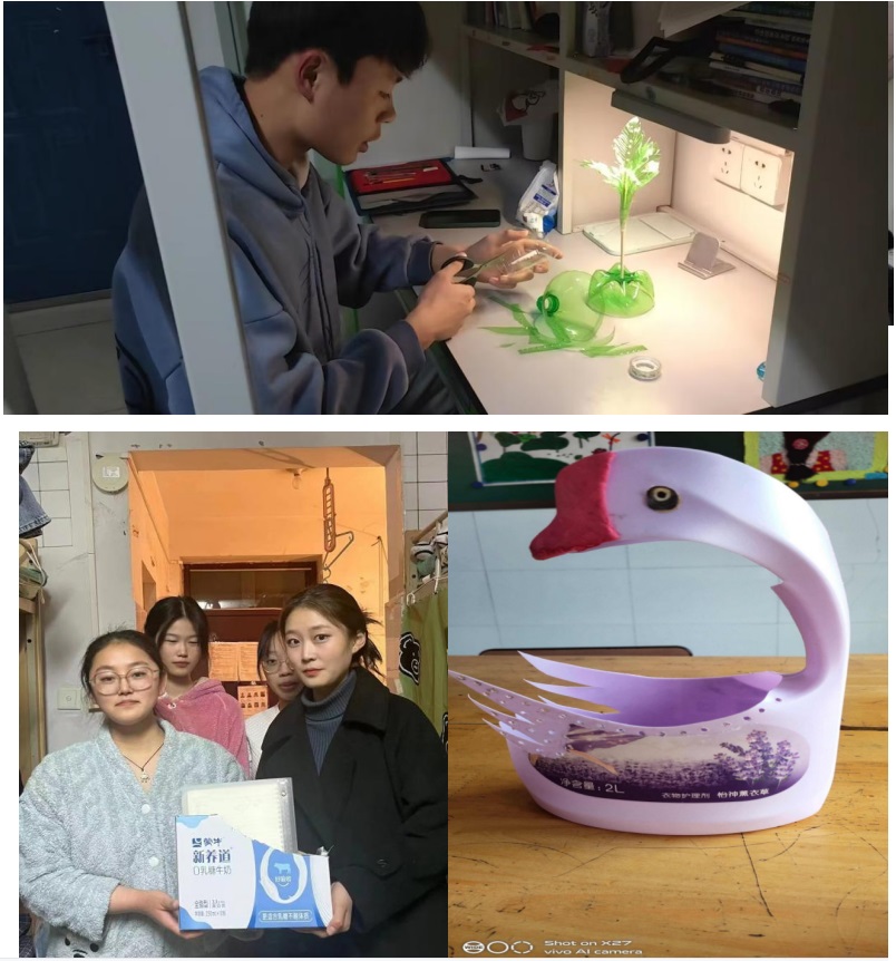 为提高学生的观察、思考和创新能力,养成节约资源,保护环境的习惯,开展“节约资源、物尽其用”实践活动,通过学生动手实践,增强学生环保、节约意识,体现当代学生的风采,引导学生参与手工制作的学习,让学生去发现生活中可利用的废旧物品。进而增强大学生的生态文明和环境保护意识。