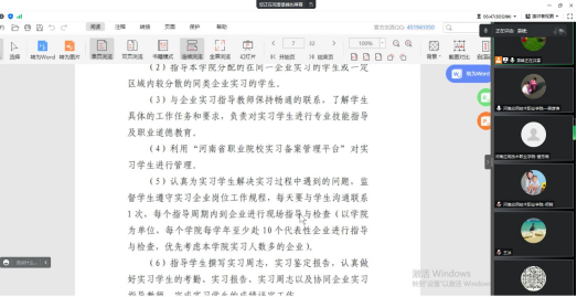 会上,李凤银首先带领大家共同学习了应院【2022】236号河南应用技术职业学院关于印发《学生实习管理办法(试行)》的通知和教育部等八部门关于印发《职业学校学生实习管理规定》的通知等两个文件;其次,就如何做好学生岗位实习备案系统的APP下载安装、账户激活、专业实习计划和任务上传、岗位实习单位考察、实习协议签订、平台实习岗位签约、学生自行联系实习单位申请办理等操作流程做了介绍和说明;最后,对做学生离校前的岗位实习工作提出两点要求:一是多与学生沟通,充分了解每名学生目前岗位签约状态,督促学生尽早签约,不要等靠和观望,确保学生离校就能到岗;二是学院将加强督促检查,以后每周将公布一次班级岗位签约率,对签约率低的班级提出批评并要求整改。