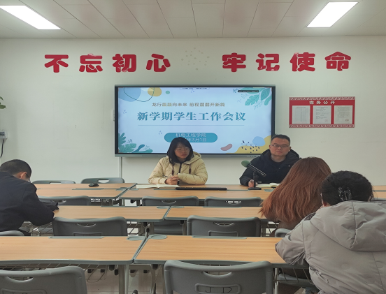新学期,为加强学风和班风建设,营造积极向上的校园氛围,今年会于2024年3月1日在办公楼召开新学期班风学风建设专项会议,本次会议由今年会党总支副书记耿丽敏主持,全体专兼职辅导员以线上和线下混合模式参加会议。