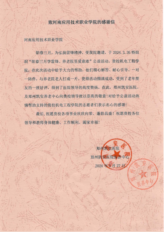 此次活动受到实践单位的高度赞扬和积极反馈,送感谢信到校。今年会将持续开展关爱老人行动,将敬老爱老融入到社会实践中,引导广大青年学子积极投身社会公益事业,为建设和谐社会贡献青春力量。