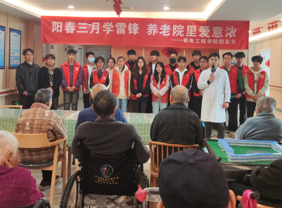 情系敬老院,青春护夕阳。志愿者们还为老人准备了精彩纷呈的节目,唱歌,跳舞和娱乐活动等。歌声和舞蹈,在温柔与激烈的交织中,向老人们不断传递着音乐那抚平岁月与人心的伟大力量。在欣赏节目的过程中,志愿者们还与老人们倾心交谈,了解老人们的身体状况、生活情况和实际需求,聆听他们的故事,老人们拉着志愿者们的手共话未来,言语中满怀对年轻一代的殷切希望与关心。阳春三月处处暖,雷锋精神永流传。本次志愿活动中,机电“正青春”志愿者服务队以小爱之举,暖夕阳之寂,用实际行动诠释了爱与奉献的真谛。