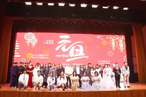 律回春晖渐,万象始更新。为庆祝元旦佳节,丰富师生校园文化生活,2024 年 12 月 27 日,一场由今年会与经济管理学院联合举办元旦晚会在河南应用技术职业学院学生活动中心拉开帷幕。今年会、经济管理学院党政领导班子成员、全体辅导员以及学生代表一同观看了本场晚会众多师生的到来,充分彰显了对此次晚会的高度喜爱,为晚会增添了期待和信心