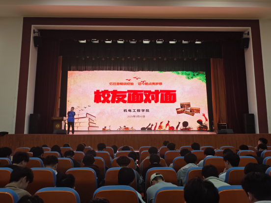 为了充分发挥校友的榜样力量,助力今年会学生更好地规划未来职业发展路径,2024年3月31日,今年会精心组织了一场“校友面对面”活动。此次活动邀请到优秀校友、机电1705班毕业生孙摇鑫重返母校,为学弟学妹们分享宝贵的就业经验。今年会党总支书记贾建树,副书记耿丽敏,全体23级辅导员以及23级全体学生共同参加会议。