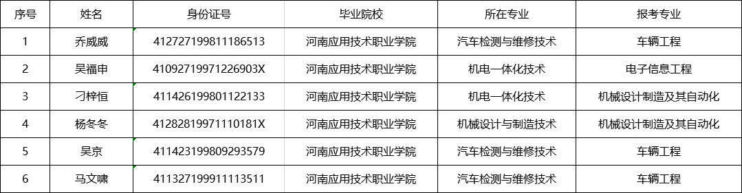 按照河南应用技术职业学院专升本的工作要求,需对2020年建档立卡贫困家庭学生参加专升本考试报名资格审核通过名单进行公示。具体名单如下: