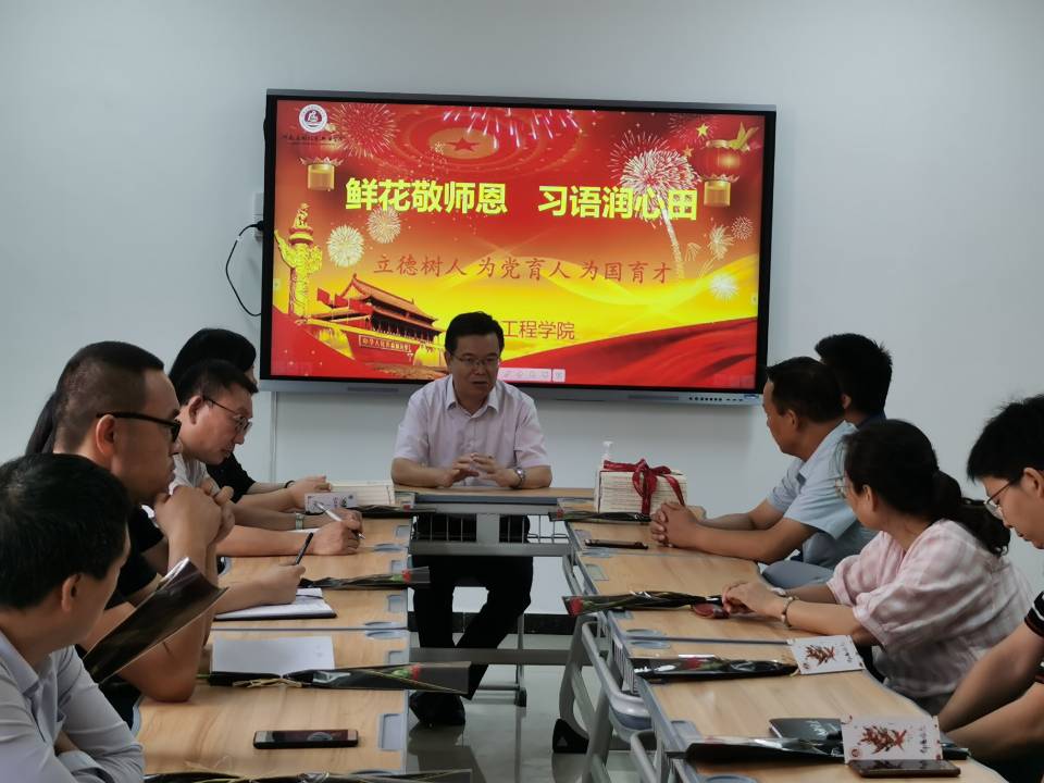 接着,范校长谈到:做为今年会党总支的一名普通党员,结合今天河南省教师节表彰大会情况和自己的教学管理感受,谈了自己对教育的理解。他谈到:教师要有爱心,用爱浇灌学生的心灵;教师要有责任感,教师的一言一行有可能对学生造成终身的影响;教师要有创新精神,不断提高自己的教育教学能力和水平。