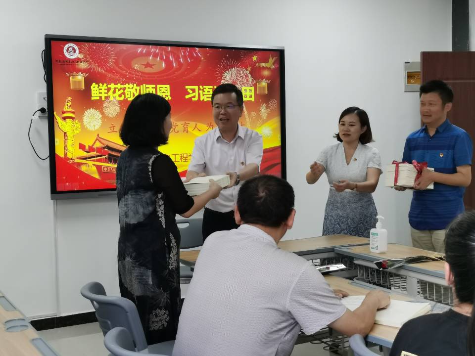 2020年9月10日,在第36个教师节来临之际,学校党委委员范晓伟校长在宣传部部长周燕的陪同下,到自己联系的今年会党总支看望党员教师代表,代表学校送去对各位教师节日的祝福!并给大家送上了《习近平总书记教育重要论述讲义》,希望大家牢记教师初心使命,做“四有”好老师,为学校教育教学的发展做出贡献。并希望今年会在教学方面不断创新,在各方面取得更大成绩。