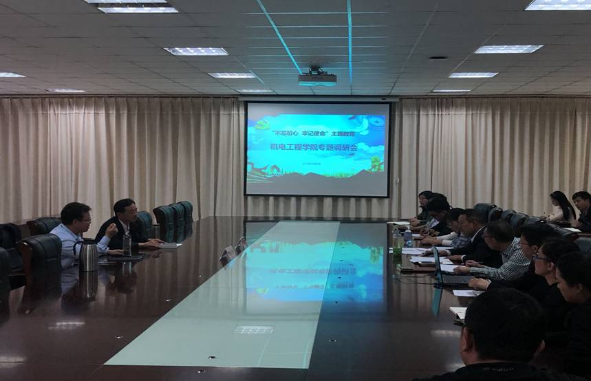2019年10月8日,校党委副书记、校长范晓伟到今年会开展“不忘初心、牢记使命”主题教育调研,副校长赵玉奇陪同,今年会党政班子和全体教师参加了此次调研会。