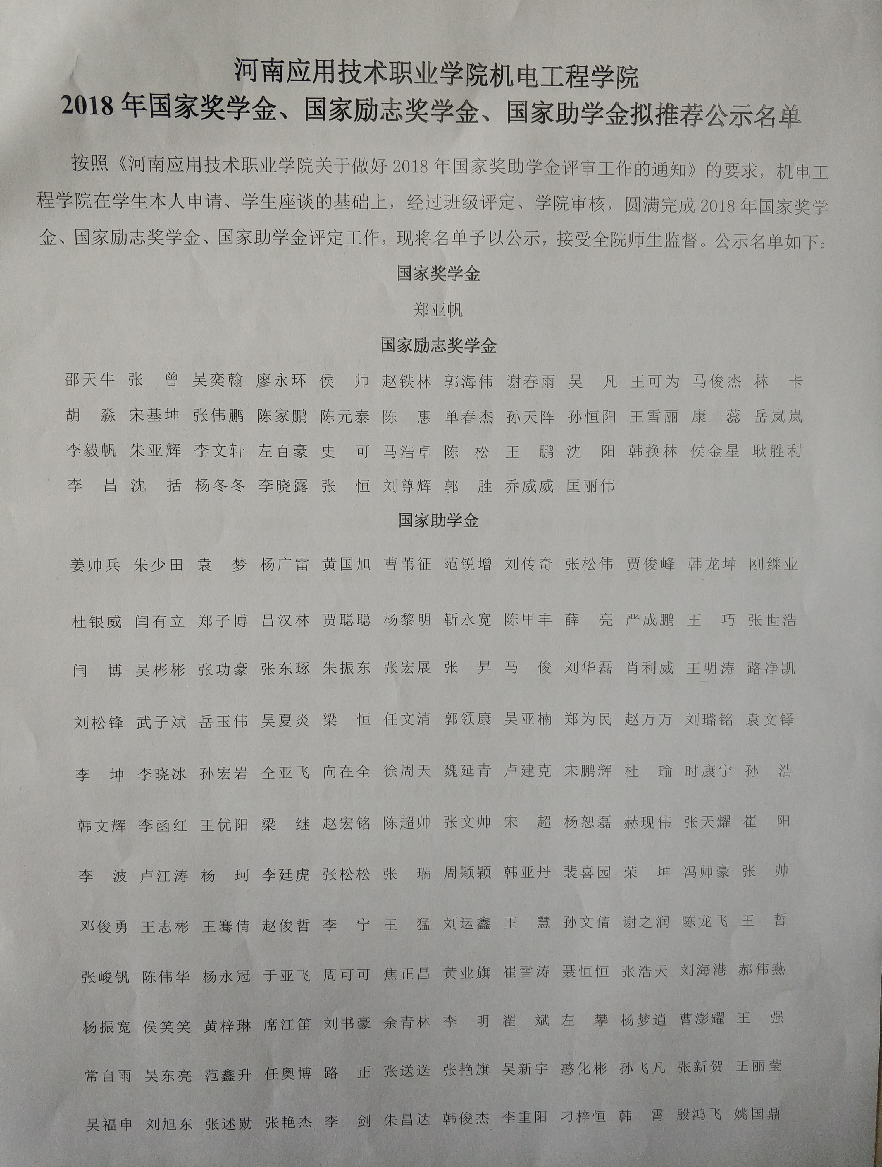 下一条:河南应用技术职业学院今年会2017-2018学年先进团支部、先进班集体、先进个人名单